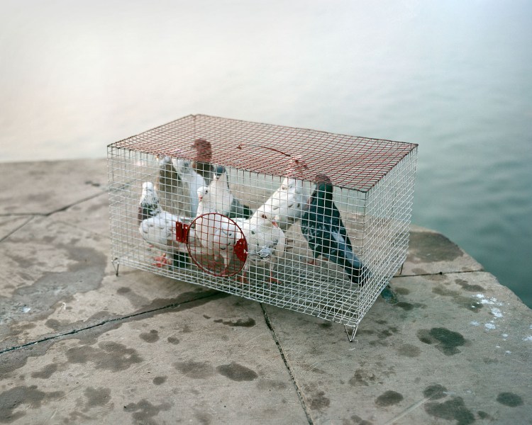 I think this series is absolutely beautiful. Aesthetically speaking they are very gentle images, some with contemplative atmospheres, mixed with tense and retrospective images. I particulary felt this with the photograph of the pigeons in a cage close to the water’s edge; the colours are pale and soft and the pigeons appear calm. However them being so close to the edge while trapped in a cage makes me feel tense because they could easily be knocked into the water and drown, but there is no other visual language to make the viewer feel this way.