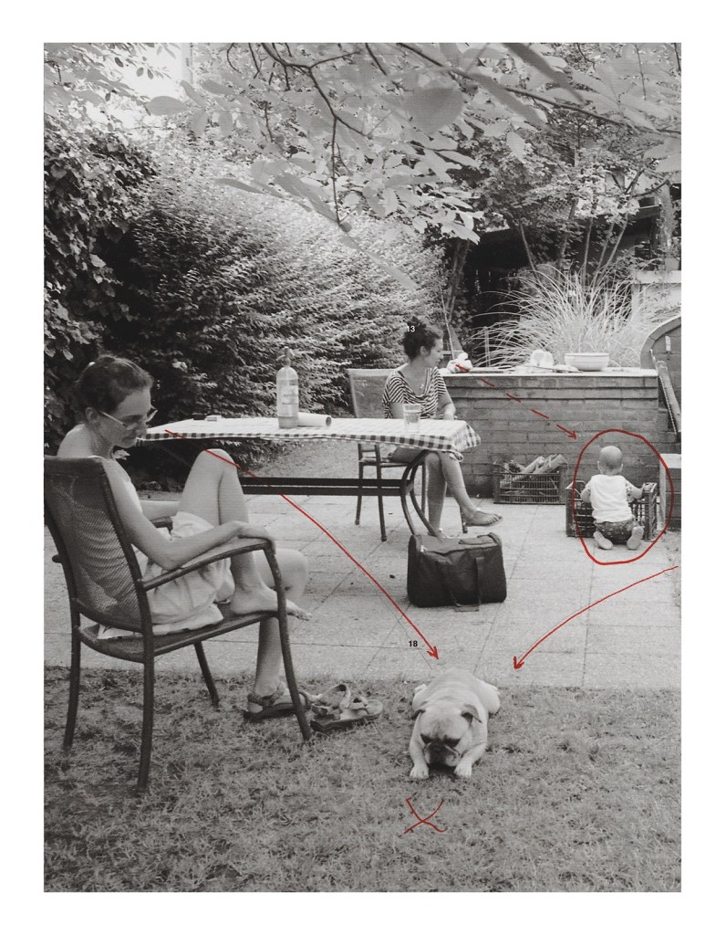 Marking out the eye line of where everyone in frame is looking, done similar to how you would on a contact sheet, adds an interesting element to an otherwise ordinary photograph.